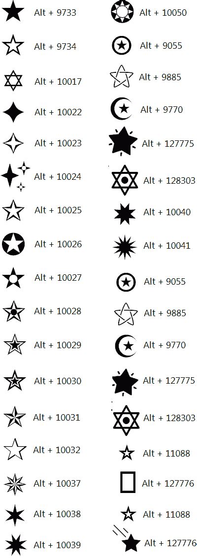 half star symbol alt code
