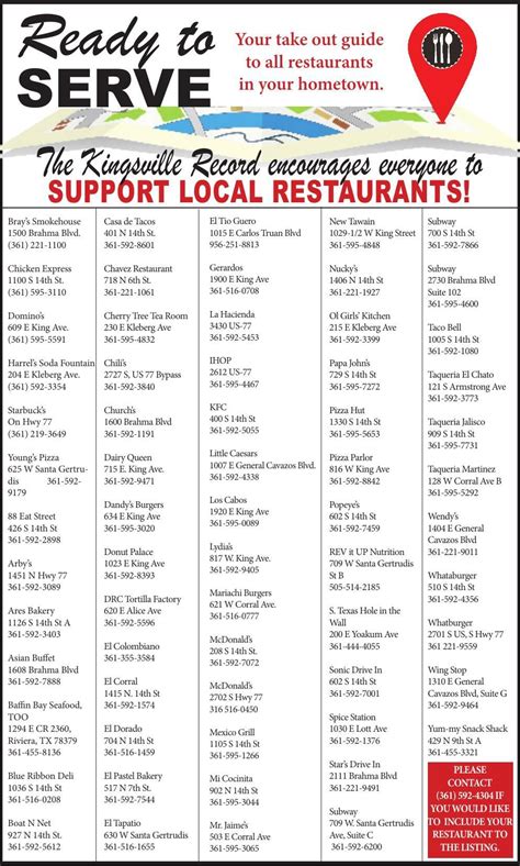 list of local restaurants