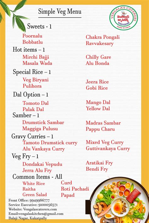 veg restaurant menu items list