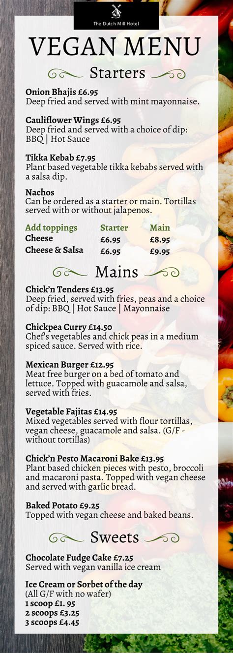 vegan hotel menu